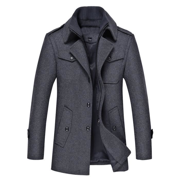 Manteau Homme Laine Hiver Chaud Trench-Coat Caban élégant Blouson Parka Veste Regular M21C2 gris