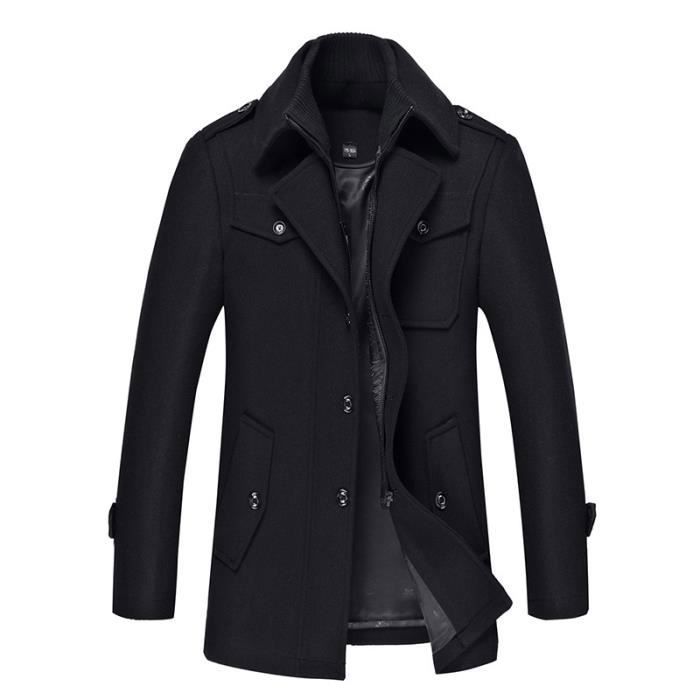 Manteau Homme Laine Hiver Chaud Trench-Coat Caban élégant Blouson Parka Veste Regular Fit Casual Manteaux M22C1 noir