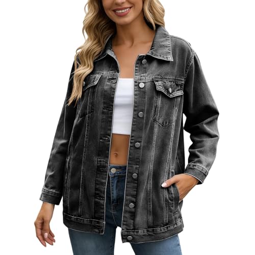 Veste en Jean Femme, Veste Jeans Denim Blouson Large mi Saison Manteaux en Coton Legere Chemise Jacket Élégant Casual Parka Grande Taille Blousons