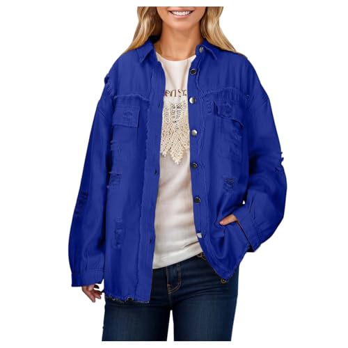 Veste en Jean Femme, Manteaux Denim Blouson en Coton mi Saison Veste Jeans Casual Grande Taille Blousons Élégant Large Parka Legere Chemise Jacket