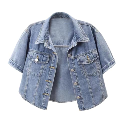 Blouson Jeans Femme - Femmes décontracté Solide Bouton à Manches Longues Veste Poitrine Gilet Poche Ample Court Manteau Manteau Ciré