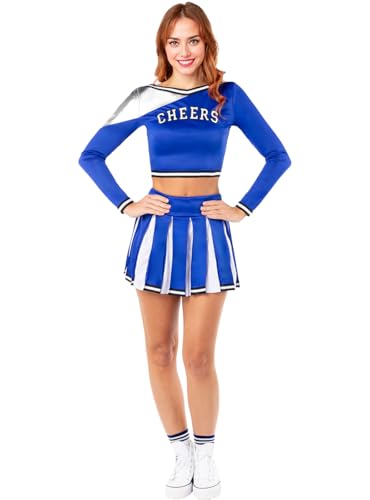Costume Cheerleader Femme - Robe Élégante De Cosplay pour Spectacle Soirée Dansante Bal Masqué Carnaval Équipe De Cheerleading Combinaison (Blue S)