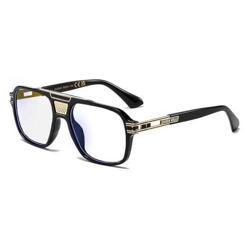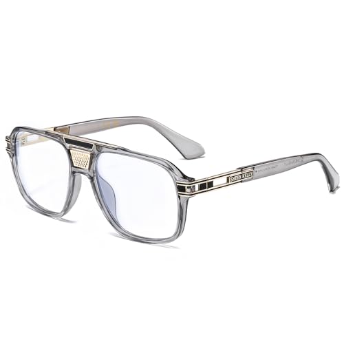 SHEEN KELLY Lunettes de soleil rétro anti-lumière bleue pour hommes, tendance, monture épaisse surdimensionnée, style métal lourd, lunettes décoratives