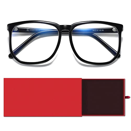 SHEEN KELLY Lunettes Anti Lumière Bleue Large Monture Femmes Hommes Carré TR90 Ultra Léger Gaming d'Ordinateur Oculaire Filtre UV400