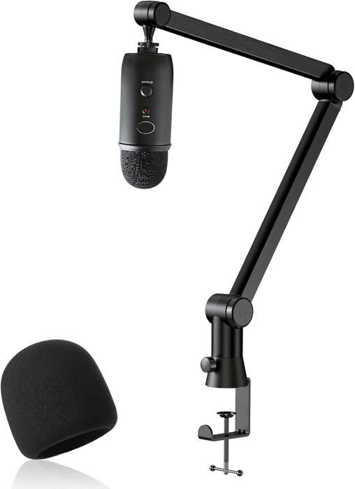 Pied de microphone YOUSHARES avec pare-brise - support de bras avec couvercle en mousse de filtre anti-pop Compatible avec le microphone YetiX bleu
