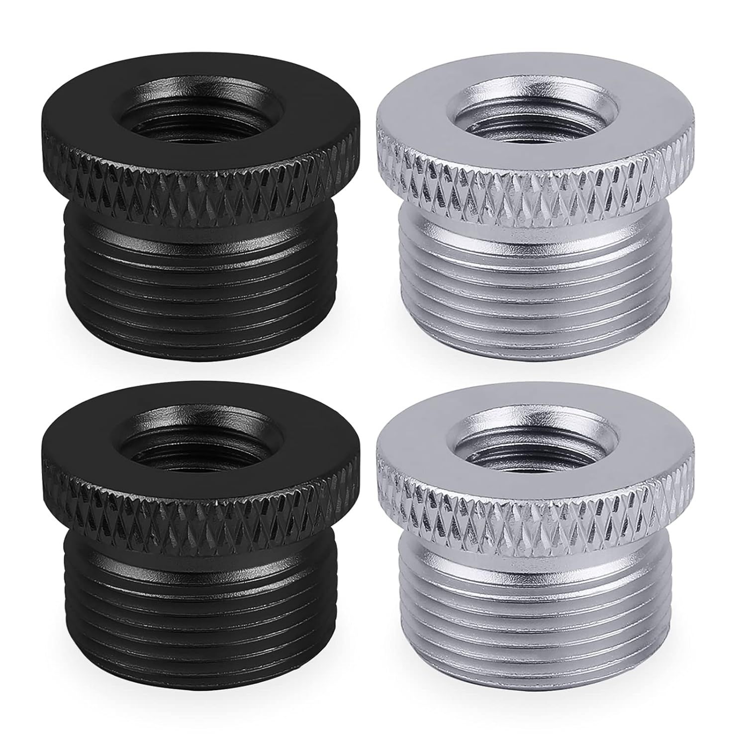 Lot de 4 Adaptateurs Filetés pour Microphone 5/8"" mâle vers 3/8"" femelle pour Microphone Blue Yeti/Blue Snowball/Yeti X Support de Microphone d'Installation (noir et argent)