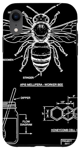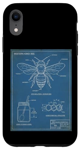 Vintage Western Honey-Bee Blueprint Cool Look Technique A Coque pour iPhone XR