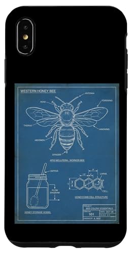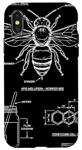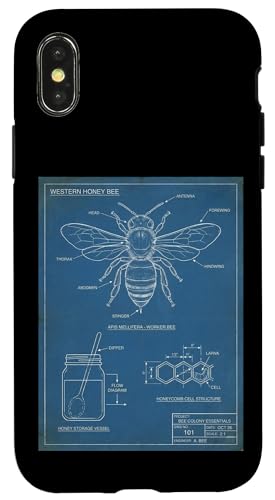 Vintage Western Honey-Bee Blueprint Cool Look Technique A Coque pour iPhone XS Max