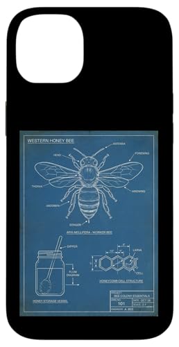 Vintage Western Honey-Bee Blueprint Cool Look Technique A Coque pour iPhone 14 Plus