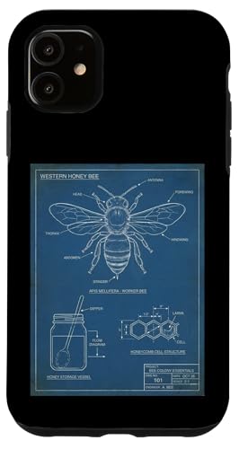Vintage Western Honey-Bee Blueprint Cool Look Technique A Coque pour iPhone 11