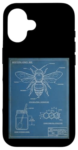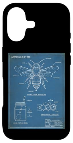 Vintage Western Honey-Bee Blueprint Cool Look Technique A Coque pour iPhone 16
