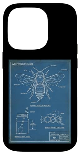 Vintage Western Honey-Bee Blueprint Cool Look Technique A Coque pour iPhone 14 Pro