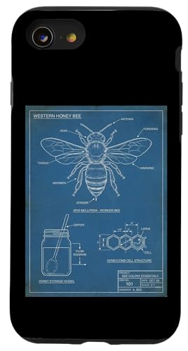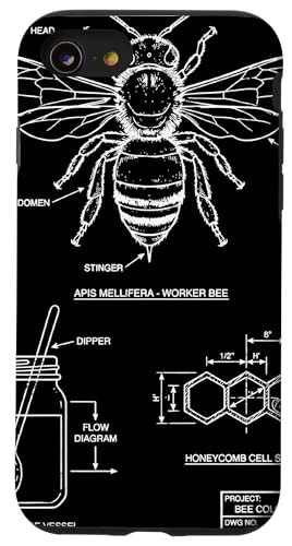 Vintage Western Honey-Bee Blueprint Cool Look Technique A Coque pour iPhone SE (2020) / 7/8