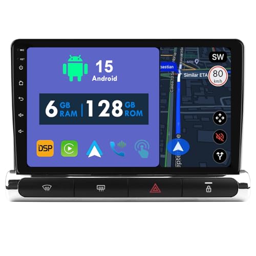 Autoradio 2 DIN,pour Citroen C2 C3 2002-2006,9 Pouces Android 15 Bluetooth Radio,avec Carplay Android Auto, Commande au Volant Caméra de Recul Mic(8core(8G+128G))