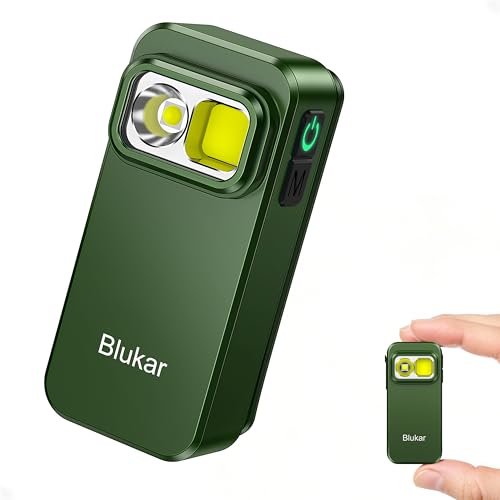 Blukar Lampe Torche LED Rechargeable, Mini EDC Lampe de Poche à Clip LED Ultra Puissante, 3 Sources de Lumière, 5 Modes, Longue Durée, Étanche & Compacte Portable Torche pour Camping,Vert foncé