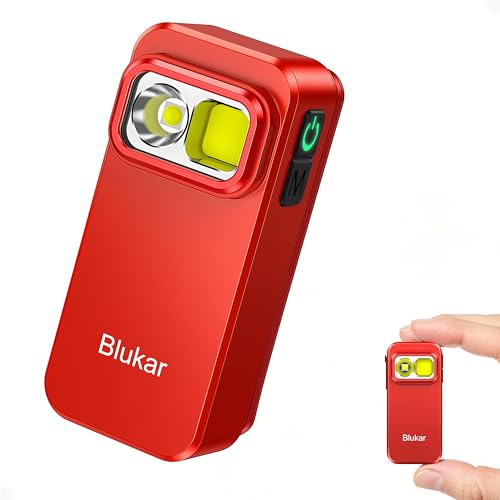 Blukar Lampe Torche LED Rechargeable, Mini EDC Lampe de Poche à Clip LED Ultra Puissante, 3 Sources de Lumière, 5 Modes, Longue Durée, Étanche & Compacte Portable Torche pour Camping/Randonnée,Rouge