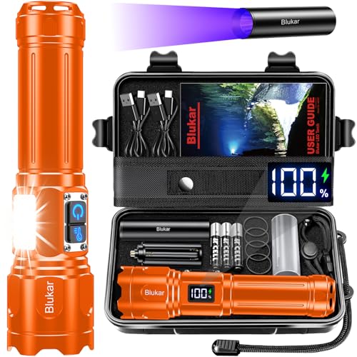 Blukar Lampe Torche LED 2 Couleurs, 2000LM Lampe de Poche Rechargeable LED Ultra Puissante en Aluminium, 10 Modes & IPX6 Étanche, Zoomable, Longue Durée pour Camping/Randonnée/Urgence,Orange