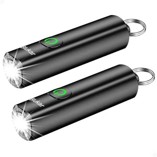 Blukar Mini Lampe Torche LED Rechargeable,2 Pack 360L EDC Mini Lampe de Poche Porte-clé LED Puissante, 3 Modes, IPX6 Étanche, Fonction Mémoire, Compact & Portable Petit Torche pour Extérieur/Urgence