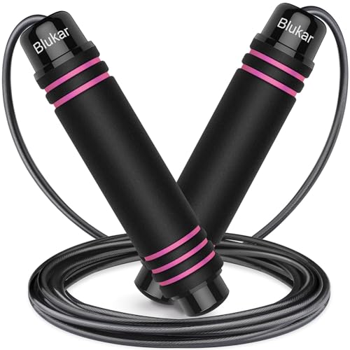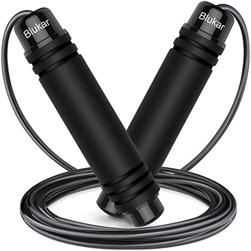 Blukar Corde à Sauter, Speed Jump Rope Réglable pour Hommes & Femmes, Roulements à Billes en Acier, Poignées Antidérapantes en Mousse, Câble en Acier pour Fitness, Crossfit, Sport, Boxe, GYM -3M