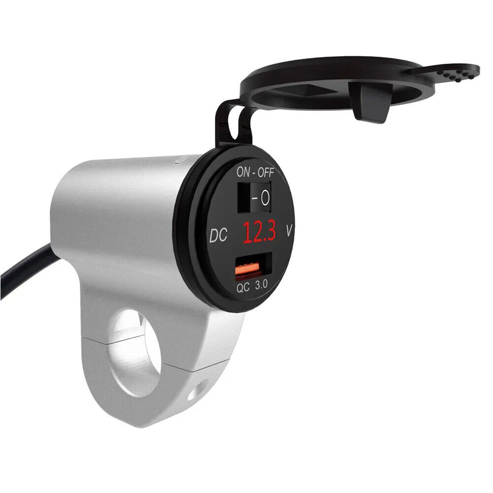 KABUTM Chargeur USB Moto 3 Sorties pour BMW K 1600 GTL 2011-2024 avec USB-A, USB-C et Câble USB-C Rétractable, Interrupteur et Voltmètre LED