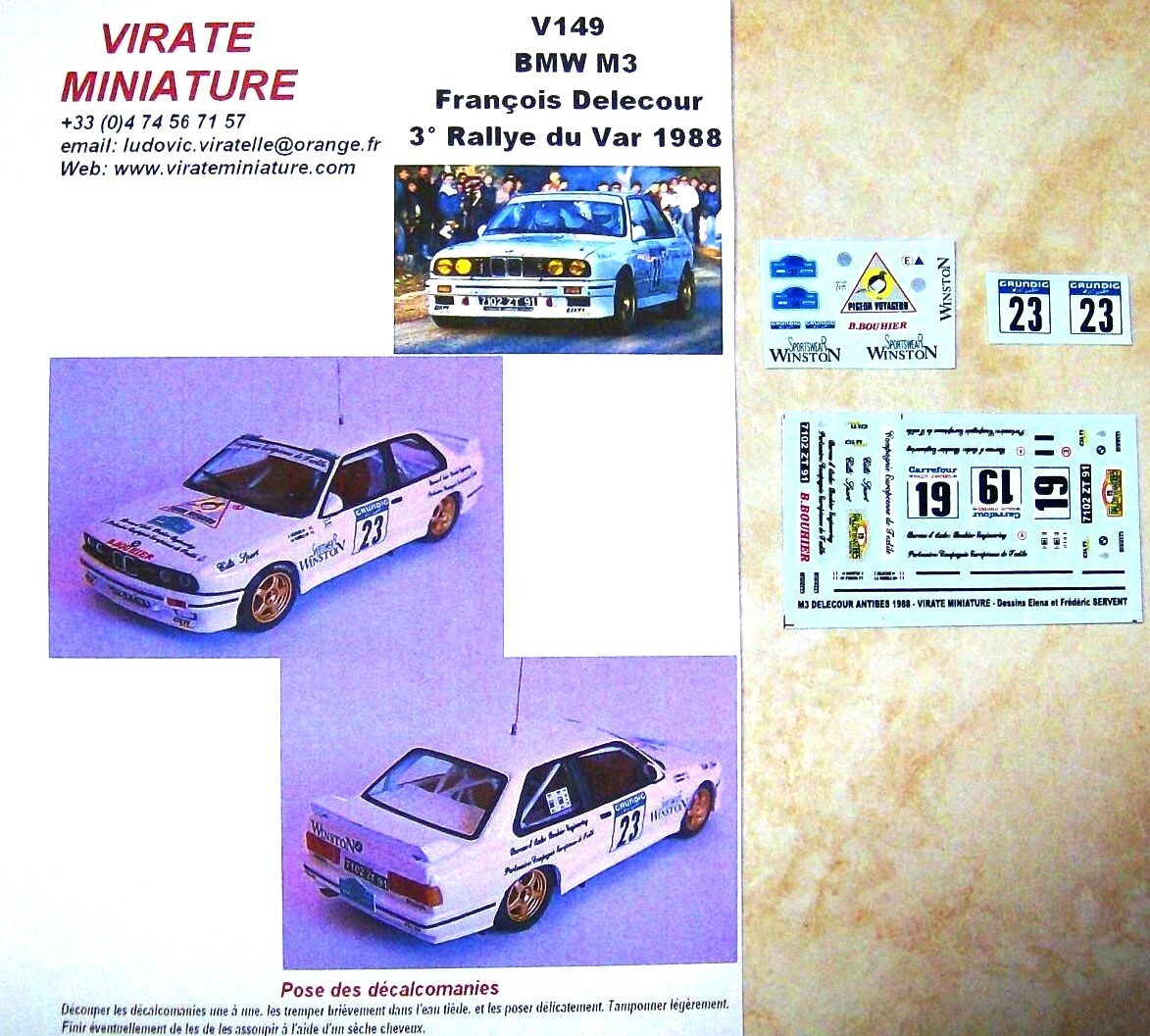 V149 BMW M3 3° RALLYE DU VAR 1988 FRANCOIS DELECOUR DECALS VIRATE MINIATURE 1/43