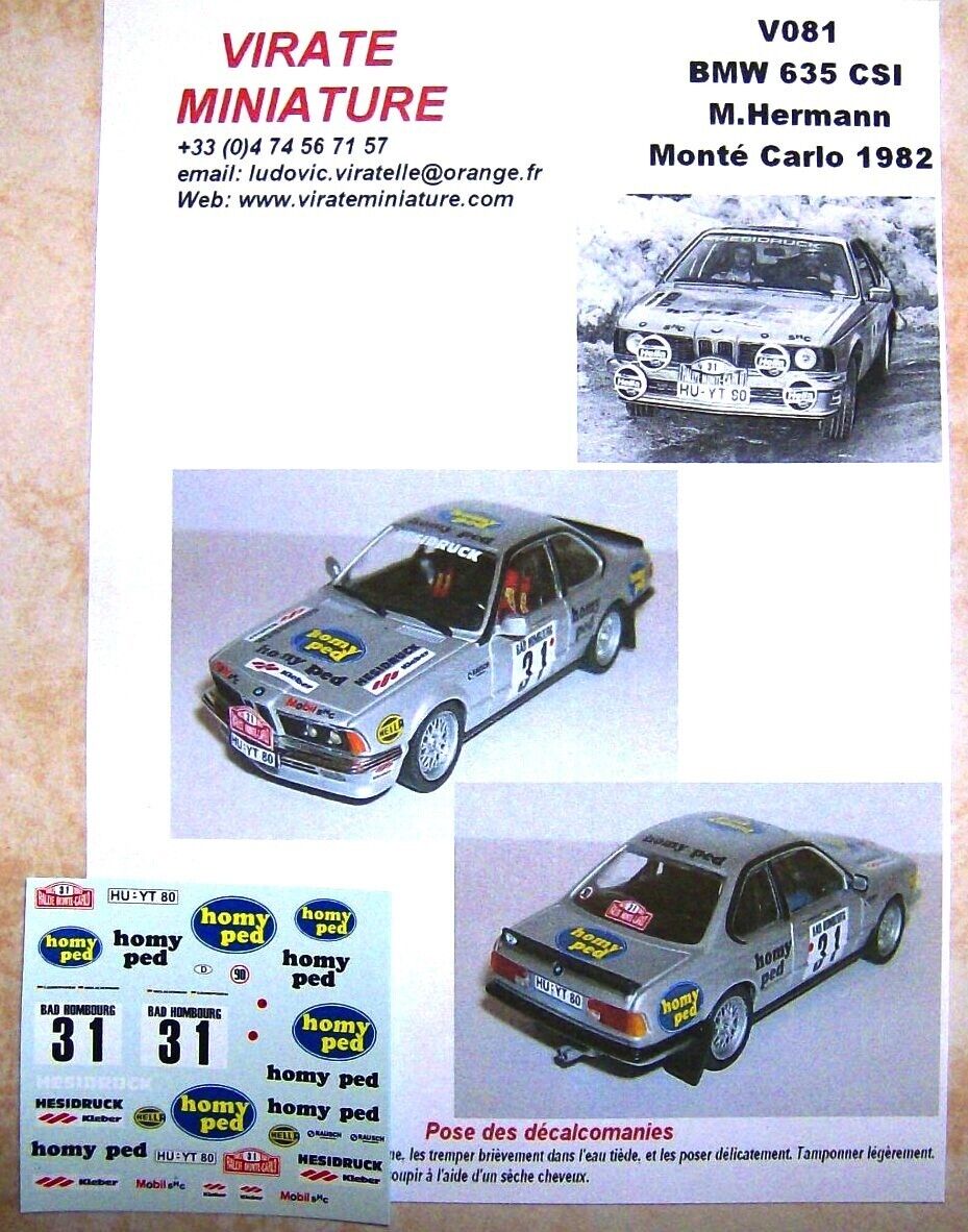 V081 BMW 635 CSI RALLYE MONTE CARLO 1982 HERMANN DECALS VIRATE MINIATURE AU 1/43