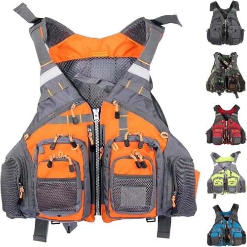 Fly Fishing Life Vest for Adults, Multifunctional Kayak Safety Vest with High Buoyancy Breathable Mesh and Multi-Pockets for Boating Paddle Boarding Water Sports Men and Women(Orange)