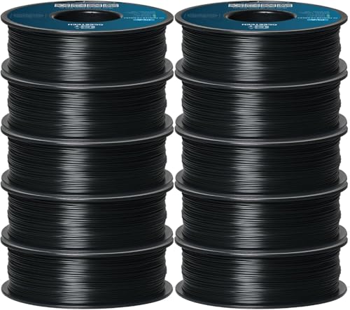 GEEETECH 10KG PLA Filament 1.75mm, Filament PLA pour Imprimante 3D,1.75mm ±0.02mm, Convient à la Plupart des Imprimante 3D FDM, 1kg par Bobine, 10 Rouleaux,Noir