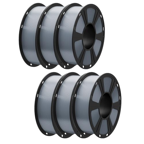 GEEETECH Filament PLA 1,75mm 6KG, PLA Filament pour imprimante 3D, Précision Dimensionnelle +/- 0,03 mm, Total 6kg, 1kg par Bobine,Gris*6