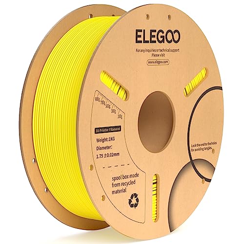 ELEGOO Filament PLA 1.75mm Jaune 1KG, Filament pour Imprimante 3D Précision Dimensionnelle +/- 0.02mm Bobine de Carton Filament d'Impression 3D Convient à la plupart des Imprimantes 3D FDM