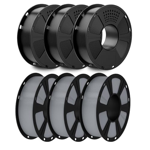 GEEETECH Filament PLA 1,75mm 6KG, PLA Filament pour imprimante 3D, Précision Dimensionnelle +/- 0,03 mm, Total 6kg, 1kg par Bobine,Noir*3+Gris*3