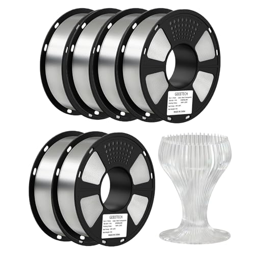 GEEETECH Filament PLA 1,75mm 6KG, PLA Filament pour imprimante 3D, Précision Dimensionnelle +/- 0,03 mm, Total 6kg, 1kg par Bobine,Transparent*6