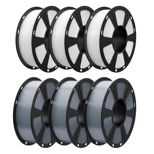 GEEETECH Filament PLA 1,75mm 6KG, PLA Filament pour imprimante 3D, Précision Dimensionnelle +/- 0,03 mm, Total 6kg, 1kg par Bobine,Blanc*3+Gris*3