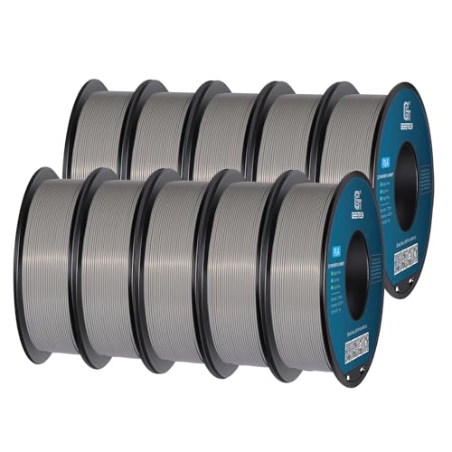 GEEETECH 10KG PLA Filament 1.75mm, Filament PLA pour Imprimante 3D,1.75mm ±0.02mm, Convient à la Plupart des Imprimante 3D FDM, 1kg par Bobine, 10 Rouleaux,Gris