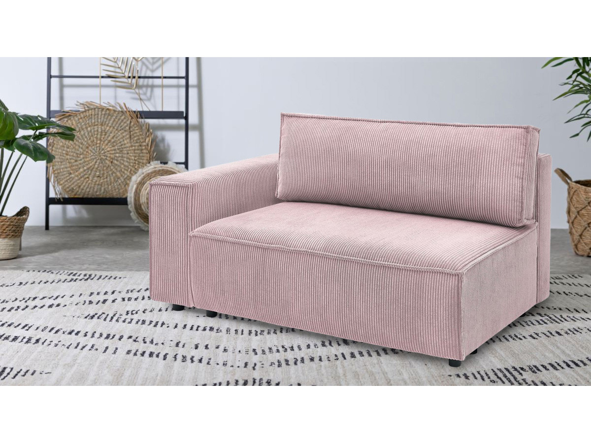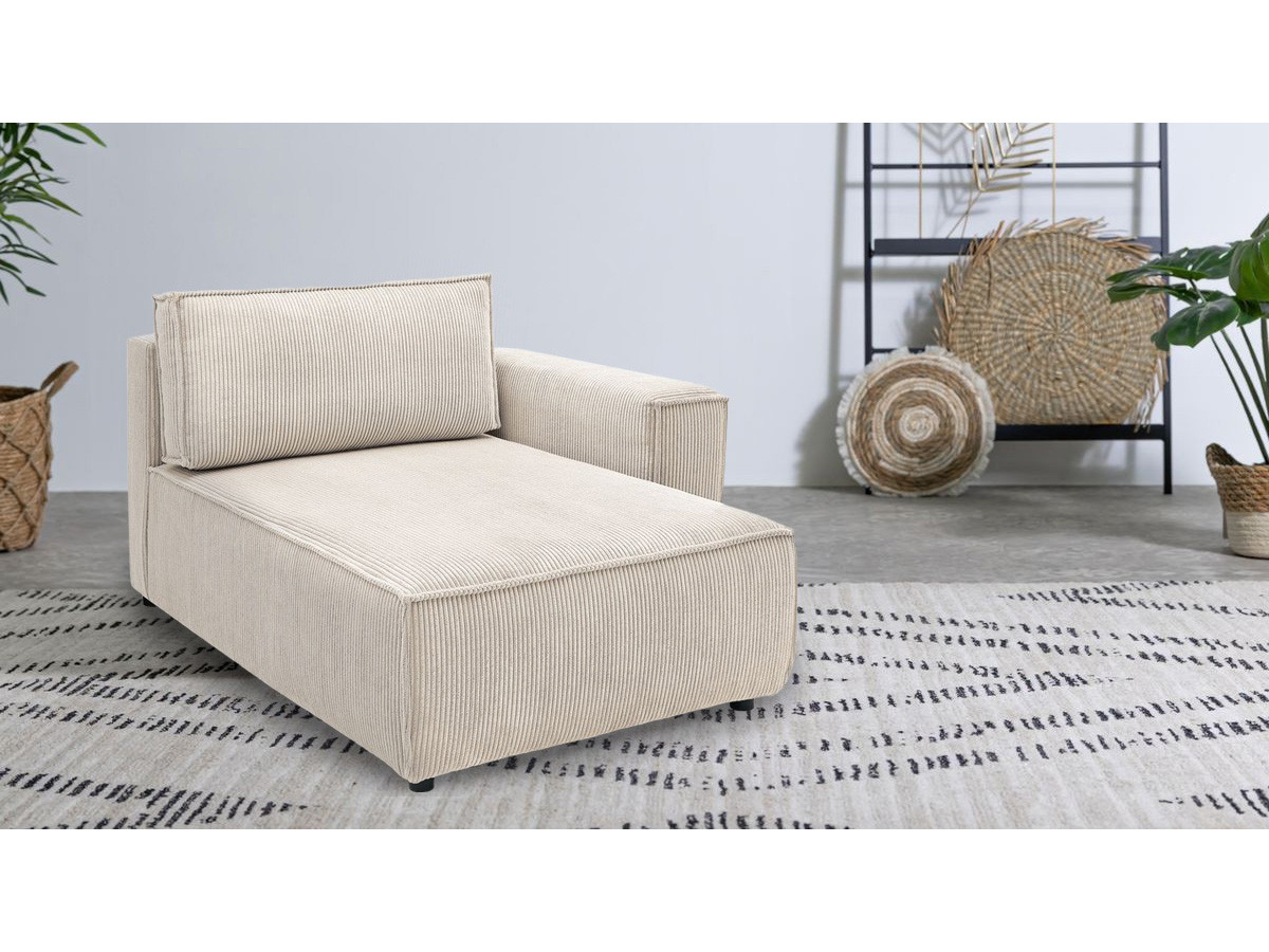 Méridienne avec accoudoir pour canapé modulable NIHAD tissu velours côtelé beige angle droit BOBOCHIC 1 places