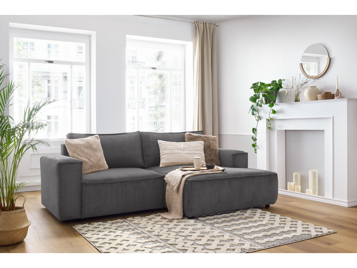 Canapé d'angle fixe compact NIHAD velours côtelé gris foncé angle droit BOBOCHIC 3 places