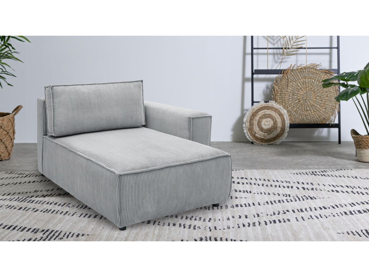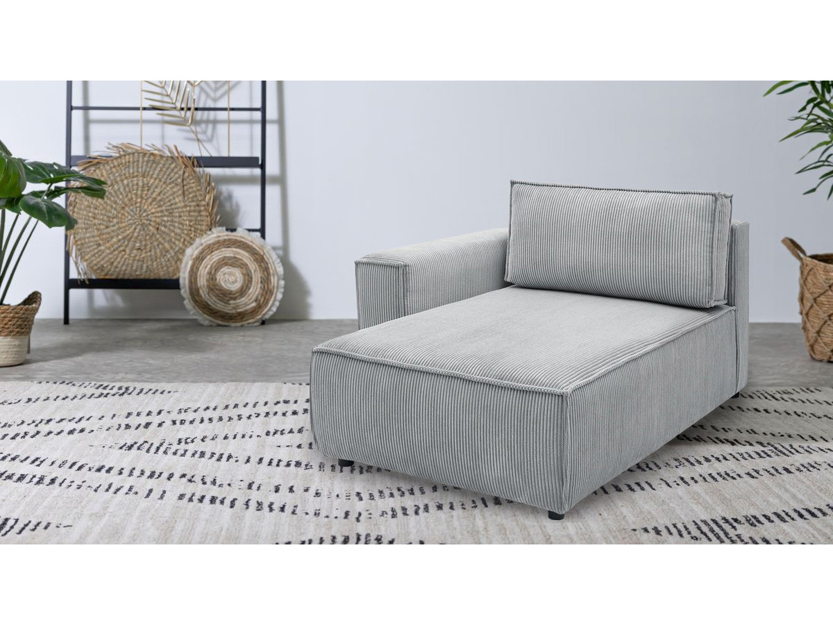 Méridienne avec accoudoir pour canapé modulable NIHAD tissu velours côtelé gris clair angle gauche BOBOCHIC 1 places