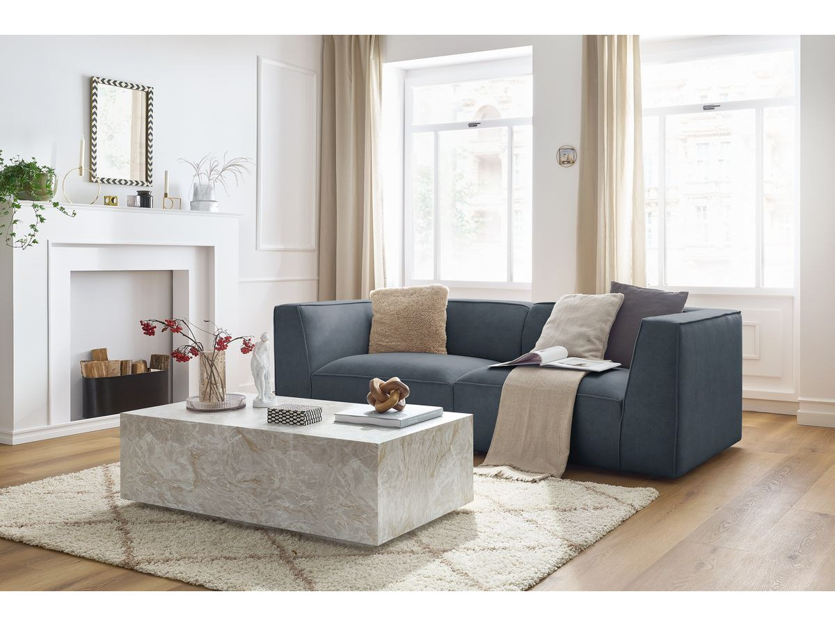 Canapé d'angle fixe compact NIHAD velours côtelé bleu foncé angle droit BOBOCHIC 3 places