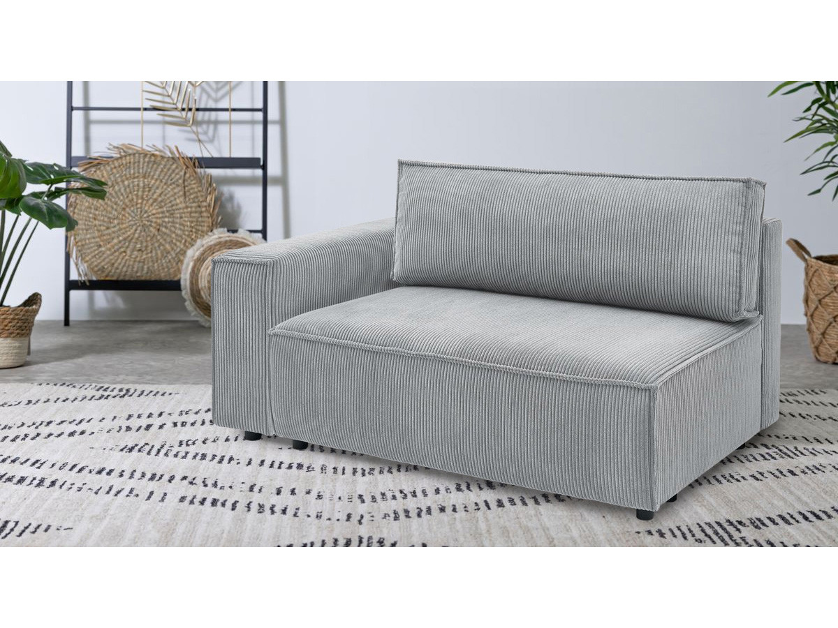 Méridienne avec accoudoir pour canapé modulable NIHAD tissu velours côtelé gris clair angle droit BOBOCHIC 1 places