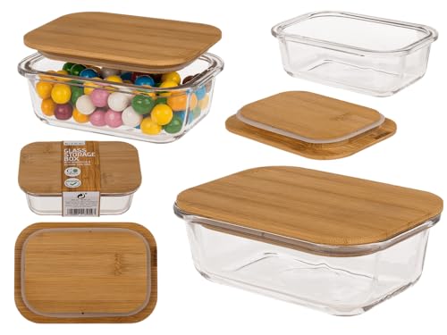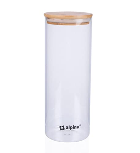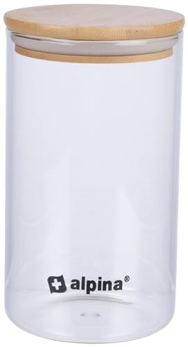alpina Bocal en Verre avec Couvercle - Pot en Verre 900ML - Verre borosilicaté/Pot de Rangement en Bambou - Bocal à Bonbons - Convient pour le Riz, les Spaghettis, les Cornflakes