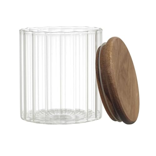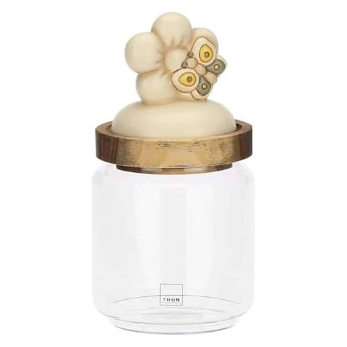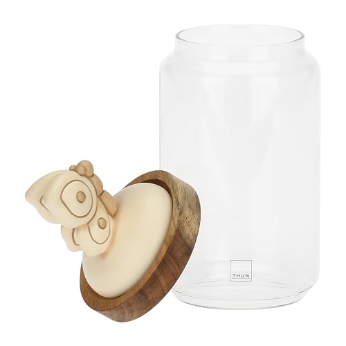 THUN, Bocal en verre avec couvercle en bois, petite version, conteneurs alimentaires, ligne Elegance, 400 ml de capacité, Ø 9 cm, 11 cm h