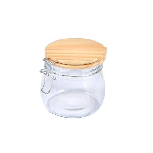 HOME DECO FACTORY Cook Concept - KA0377 Bocal de Conservation en Verre Transparent avec Couvercle en Acacia - Conçu pour Aliments et Objets Divers - Design Moderne - Capacité 50 cl - Couleur Naturel