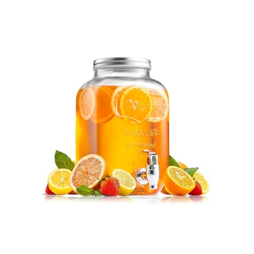 Distributeur de Boissons en Verre – Bocal à Boisson avec Robinet | Distributeur de jus | Distributeur de Boissons | Distributeur de Boissons | colorées et éternelles artificielles résistantes