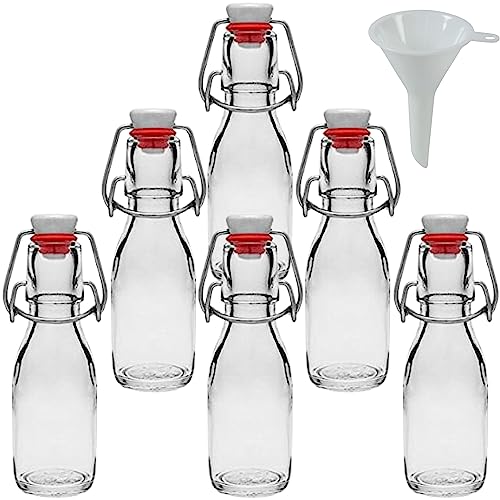 Viva Haushaltswaren Petites Bouteilles en Verre avec Bouchon mécanique 100 ML x6 pour Auto-Garnissage y Compris Un Robinet Blanc-Entonnoir Diamètre 5 cm