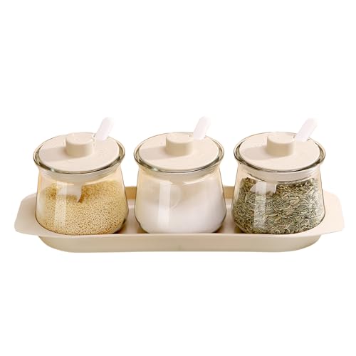 Ensemble de boîte d'assaisonnement en Verre, récipient d'assaisonnement pour boîte à Condiments avec cuillère à Couvercle et Bocal à épices Peu encombrant pour Les Gadgets de Cuisine