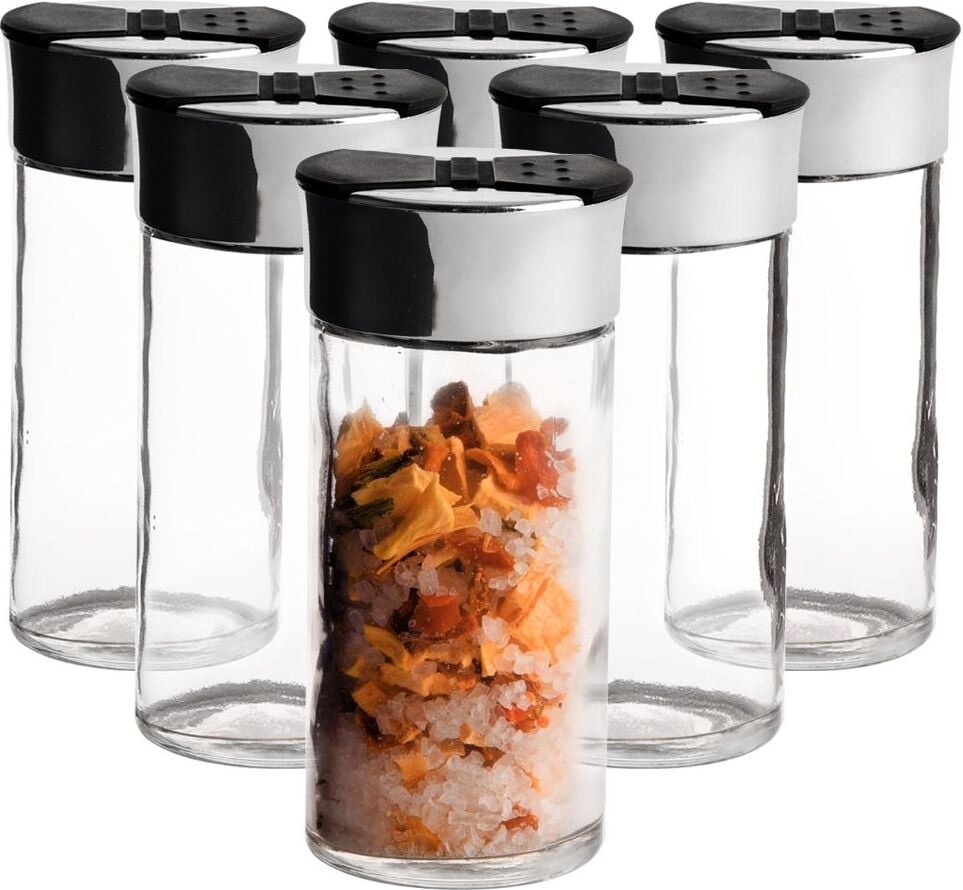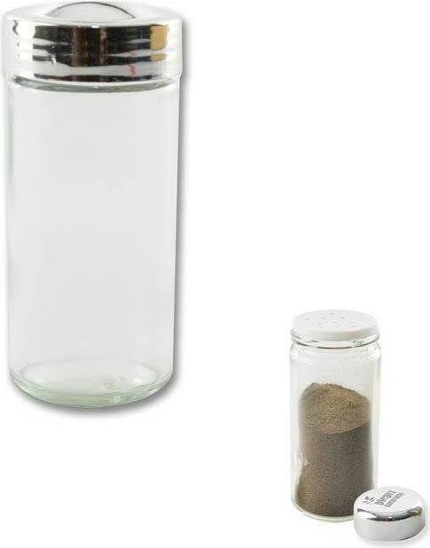 Fackelmann 46893 saupoudreuse sucre, saupoudreuse sucre glace, bocal epices, rangement epices cuisine, pot à parmesan, Verre, Acier, 14 x 7,5 cm