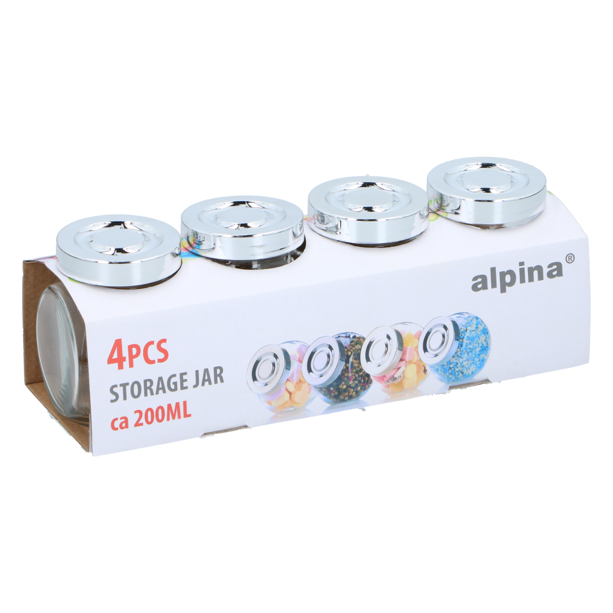 Alpina Bocal Verre – Lot de 4 Bocaux 200 ml avec Couvercle à Vis – Bocal Epices
