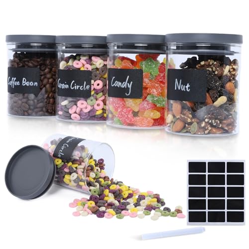 OTraki Bocaux en Verre Hermétique Lot de 4 Bocal en Verre avec Couvercle avec 1 Stylo Blanc et 15 Étiquettes Bocaux de Conservation Pour Céréales, Cornflakes, Spaghetti, Haricots, Épices