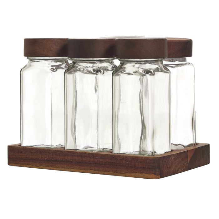 Bocal à épices - Cook Concept - Transparent - Sur Plateau En Acacia - H12 X L17 X P11 Cm