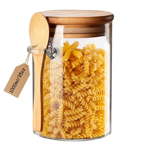Yardwe Bocaux en Verre de 950 ML avec Couvercles en Bambou Récipients de Cuisine de Céréales Alimentaires Étanches à L'air pour Le Stockage Bidon pour Spaghetti Confiture de Pâtes